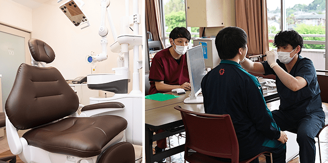 また、訪問歯科診療にも力を入れています。検診をはじめとして、口腔ケアやご自宅や施設でのブラッシングや義歯の清掃指導なども行っています。近年問題となっているオーラルフレイルの予防や口腔機能維持・向上のために、嚥下内視鏡チェックなどを行い、リハビリや訓練を指導しているため、在宅医療に関する知識・経験を得ることができます。