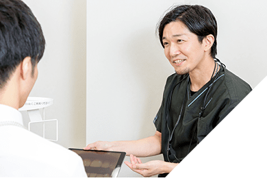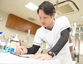 外来診療では、歯科医師や歯科衛生士の診療業務を中心に、歯科助手の診療サポート、受付の会計業務などが、患者様に円滑でストレスのない診療を提供するためには必要不可欠だと思います。また訪問診療では、訪問コーディネーターを中心として、効率よく診療を行う計画を立てています。訪問診療自体がシステム化されているため、経験が少なくても安心して取り組んでいただけます。