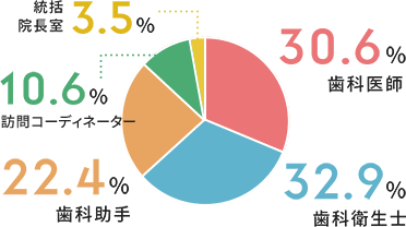 歯科診療や物販の購入が職員割引価格で適用できます。保険診療は無料、自由診療は 50%割引です。ご家族も一部対象となります。また、グループ内商品の割引き適用もあります。