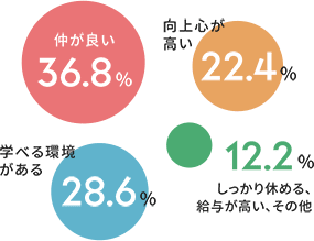 育児休業、産前・産後休業の制度を完備し、取得実績も豊富なため、妊娠を考えている方にも働きやすい環境です。